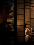 Within the rooms, colored glass chandeliers—symbolizing water and abundance—and auspicious fruit-shaped wall lamps stir a delightful vibrancy against the tranquil backdrop.
