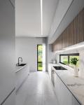The interiors are defined by clarity, proportion, and material authenticity. A restrained palette of textures, from tactile stone to smooth plaster surfaces, sets the stage for natural light to orchestrate the atmosphere throughout the day. Spaces are organized with a sense of fluid continuity, allowing inside and outside to merge seamlessly. This creates an environment that is not only functional but also refined and human-centered, balancing comfort with a quiet sense of contemporary elegance.