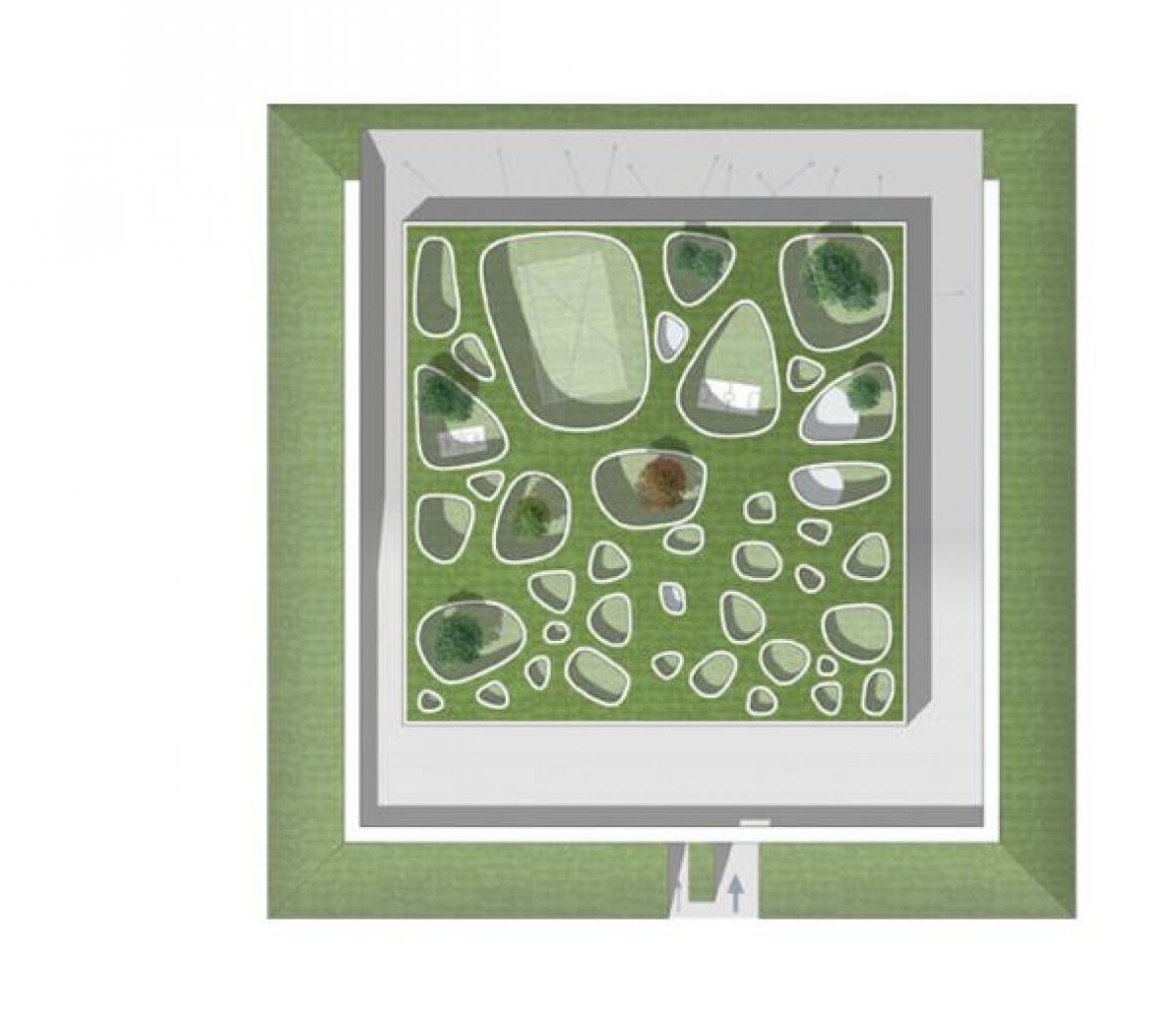 The main building develops on three over groud floors and one partially undergroud floor. Each modern jail “cell” faces onto inner voids {big and bigger}, which funtions as visual connections and outdoors spaces for leisure and sport activities. The number and dimensions of these voids increase proceeding from entrance {south} to northern boundary. It’s also possible to maximize cells’ surface and also join two adiacent cells, in order to host 4 persons in 56 sqm {with toilet and services like a basic kitchenette and wardrobe}.