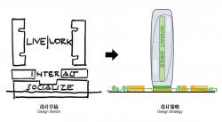 The lobby faces the northeast urban green axis, and together with the tower and canopy’s bold forms, establishes a new landmark urban living room. A faceted curtain wall system integrates concealed operable vent to maintaining visual integrity. Double-height green communal spaces are introduced every two to three floors, with a sky-viewing gallery at the top. The design promotes interaction and extends greenery indoors, creating a humane working environment.