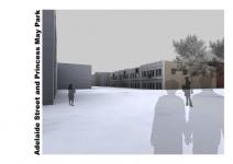The idea that we developed to the city of Fremantle use recycled materials {doors, windows and other wood materials from other buildings}, has garden roof that is accessible to the public, and is connected to a very actual/historical urban wall that we will explain later.