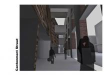 The concept of this building is very simple, the urban wall is like a scenario that gives the impression that we are looking for other traditional but if we look carefully we can see details that invite the peasants to know more about the building. When walk through the urban wall they are in a space with a strong tension created by the wood skin from the building against the urban wall, the peasant is in a very dramatic area {the stage}. After this tension area the peasant enters in the building, the refugee. All the entire building is opened into the internal courtyard. This is a very clean and private space with lots of light. Under the Courtyard we have a public area composed by offices, one kindergarten, one multifunctional room, a technical area, and one cinema room to gives support to the cinema school. In the level zero of the rest of the building we have commercial space, office space, restaurant, ice ream shop. In the upper levels we have lots of T1 and T0 that can be used as habitations or as offices, this conversion is easy because we created a central area in the flats, looking for ensure only the basic needs.