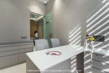 The project also reflects a commitment to NABH accreditation standards, which emphasize patient safety, infection control, and operational quality. Each material and detail was carefully considered not only for visual appeal but also for durability, ease of maintenance, and compliance with healthcare norms. Ventilation strategies and hygienic finishes reinforce the clinical efficiency of the interiors without compromising aesthetic warmth.