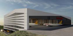 Reinforced concrete basement floors and "T-block", steel structure for the hangar space, insulated sandwich panel façade cladding
