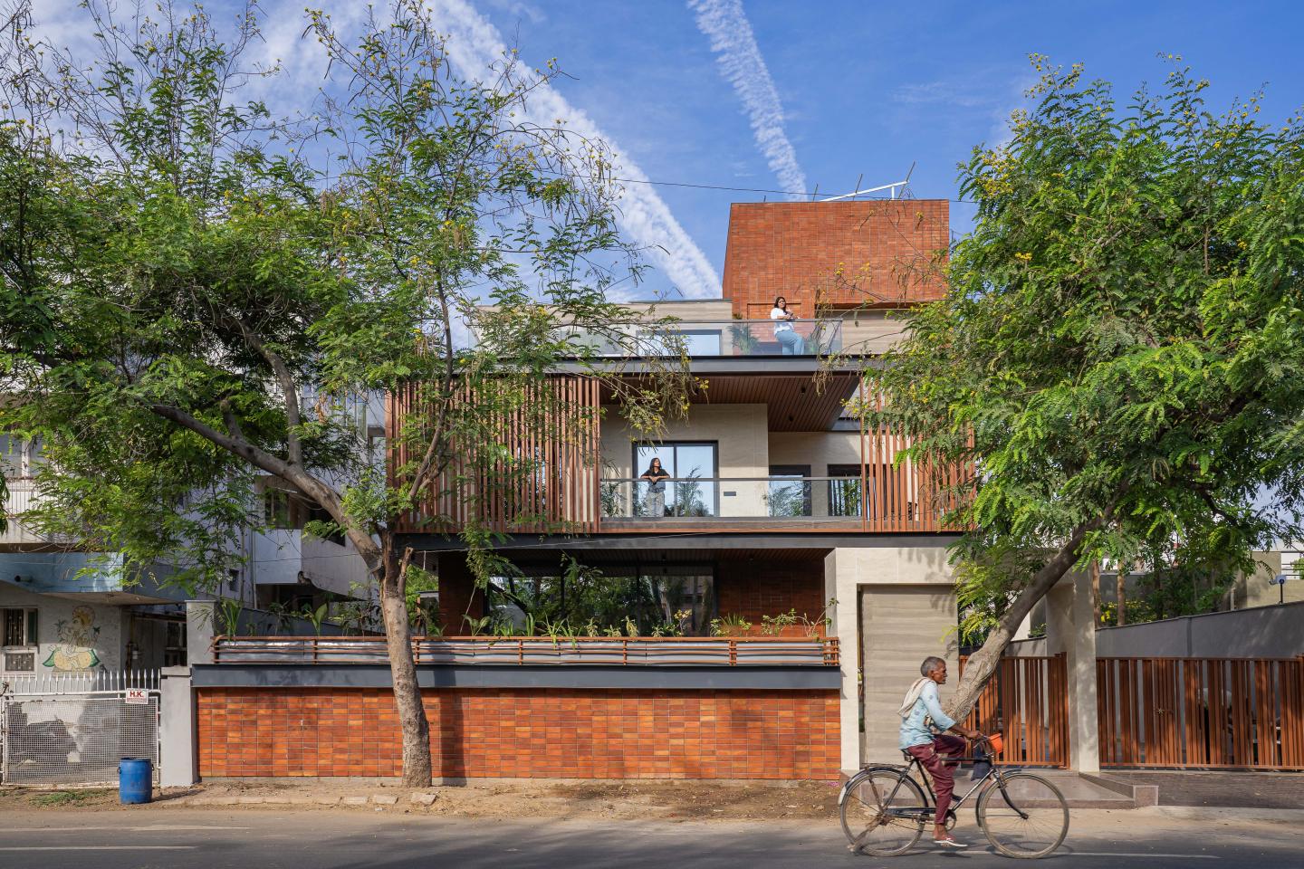 The house is situated on an east-facing corner plot at the intersection of a 60-foot-wide arterial road and a secondary lane, in proximity to Dr. Jivraj Mehta Hospital and the Ahmedabad metro line. The site’s urban context posed challenges of noise pollution, visual exposure, and harsh climatic conditions, particularly the intense southeast sun.