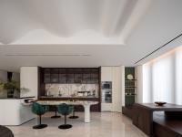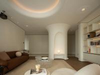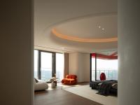 Building on the original architectural structure, the designer made targeted renovations—drawing inspiration from nature's curves. Rejecting simple flat ceilings, the design organizes the space into undulating wave-like forms based on the layout of beams and pipelines. This approach preserves the advantage of generous ceiling height while concealing functional utilities within artistic structures: the wavy ceiling adds visual depth, and the walls are shaped into streamlined forms, evoking the ripples of a stone skipping across water. Even the furniture echoes this curved language, ensuring the overall design resonates with Ningbo's urban texture and natural essence.