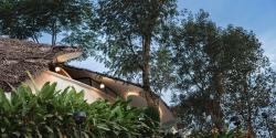Earth’s Embrace is conceived as an eco-retreat that redefines the relationship between architecture and landscape in the tropical hills of Wayanad, Kerala. Designed by Raving Dots Studio, the project grew from the idea of crafting a meditative space where visitors could immerse themselves in nature without reliance on energy-intensive systems. The design intentions were shaped by two key goals: to reconnect people with the ecological richness of the site, and to minimize both embodied and operational energy.