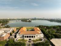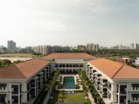 The design of Taj Taal Kutir reinterprets the architecture of British-era social clubs, paying homage to the city's rich cultural and architectural heritage. Overlooking a 112-acre lake and the lush gardens of Eco Park, the hotel’s introverted C-shaped plan maximises views of the placid lakeside, a centrally positioned swimming pool, and landscaped surroundings, creating a resort-like atmosphere within the city’s vibrant urban fabric.