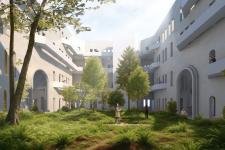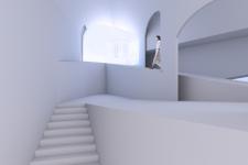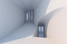 This strategy ensures that the new building does not impose itself as an isolated object, but instead emerges from the logic of its urban context. Subtle alignments, such as roofline shifts, proportional echoes, and the repetition of arch and rectangular openings, strengthen continuity with neighboring architecture. At the same time, the intersecting tubes generate new spatial experiences: double-height gathering spaces, visual corridors through the building, and platforms that allow visitors to walk alongside the old façade while engaging with the new.