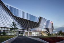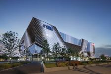 The façade design draws inspiration from traditional Chinese carving techniques to sculpt the building’s massing. Using aluminum panels and Low-E ultra-clear insulated glass, the exterior presents a clean, modern elegance. Balancing aesthetics and performance, the design enhances daylighting and ventilation while integrating dynamic lighting for round-the-clock brand visibility. The east façade minimises the elevated road’s impact, while the open, expressive west façade maximises consumer engagement and reinforces the site’s commercial orientation.