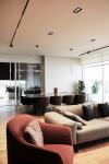 In line with the user demands, the plan scheme was organised with 9 rooms including 8 suites and 1 attendant suite. In addition, an external guest house was also included in the project . Considering the crowded program, the slope and longitudenal direction of the site perpendicular to the sea, the house is designed consisting 1 basement and two normal floors, gradually fitting into the slope with volumetric discharges and retreats. The bedrooms and living areas gathered around a central sofa which makes easier to settle on the narrow side of the land. This central plan scheme forms the basis of a modernised Turkish house. The eaves are widened for intense wind and sunlight, and the traditonal mediterranean colour white rendering was preferred due to its heat retention and reflection effect, which is applied with a traditional lime plaster mixture for preventing moisture and mold.All these components emphasizes a local, modern and minimal visual language of architecture. The same approach is followed in materials, interiors and details as well.