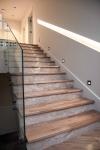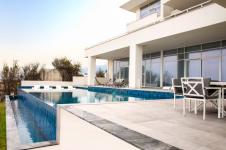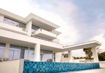 The northern façade of the basement floor is completely withdrawn to form an arcade which is associated with a swimming pool and terrace area. This semi-open area has become a space where the family spends most of its time, especially in summer months. This arcade, intentionally reduced the perception of height when viewed from the sea, by visually differentiating the floors, and at the same time linked the living spaces more with the sea, pool and the garden. In addition, a front garden, a guest house, a car park and a charging station were created at the entrance level of the building. The seaside pier was renovated, and a garden fireplace, terrace and relaxation areas were added to the garden between the beach and the building.