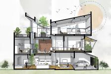 The challenge was to design a comfortable, private, and naturally ventilated home, cool in summer and warm in winter, with abundant daylight despite the narrow site.