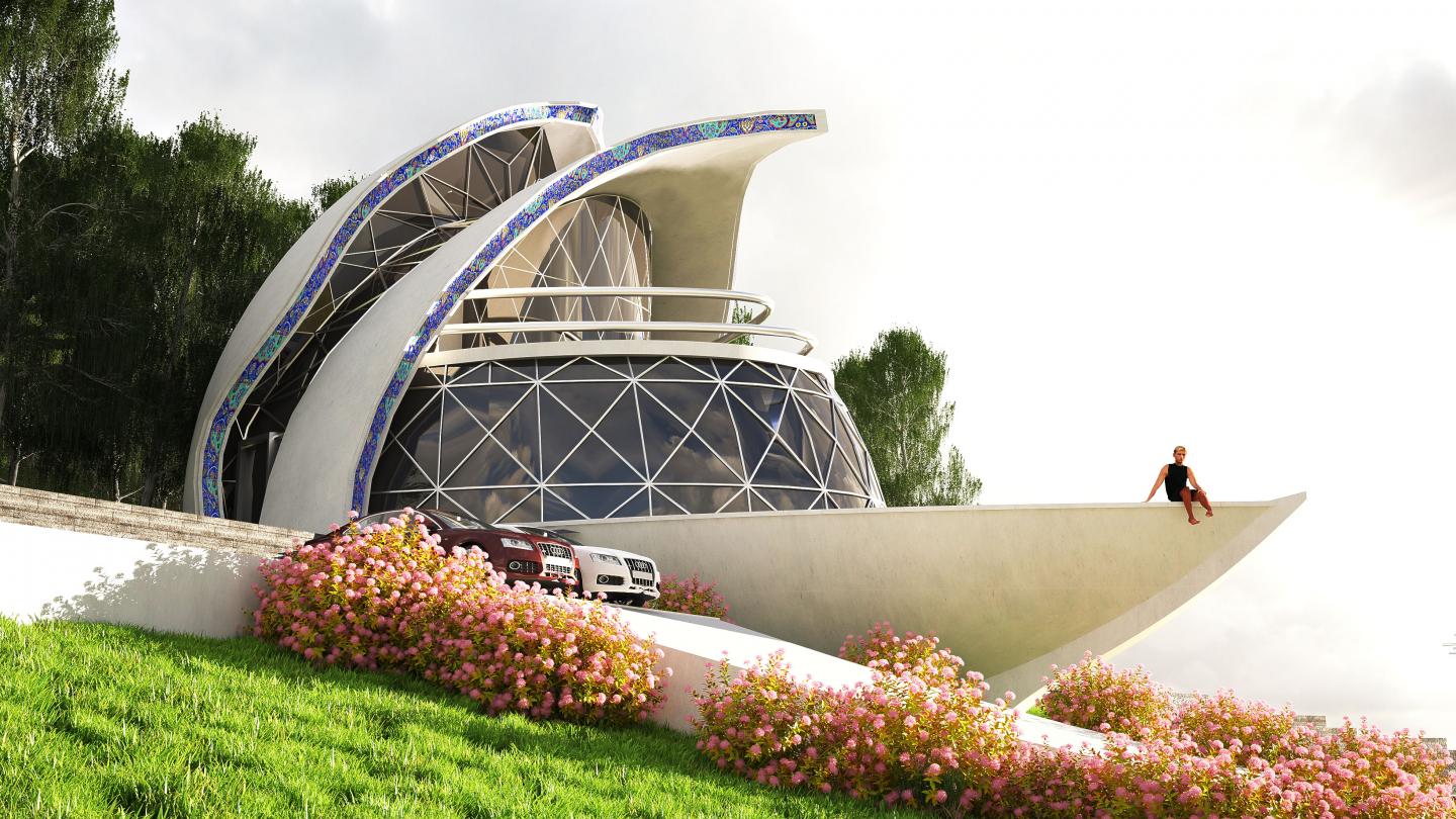 The notion of paradise inevitably recalls the heritage of Persian miniature painting, where birds, flowers, and cosmic symbols unfold in layered compositions. Villa 212 sought to echo this lineage: a modern reinterpretation of heavenly geometry through asymmetrical cuts and dynamic forms, drawing on Iranian traditions of shamseh motifs, arabesques, and floral iconography. The result is an architecture that is both playful and spiritual, balancing metaphysical narrative with functional clarity.