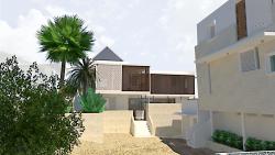 The existing townhouse has a professional office and art gallery on the ground floor and a private residence located on the second floor. The vacant vernacular cottages are being restored to become short-term rental units. These units, in conjunction with a new L-shaped contemporary structure with a 2nd-floor apartment and ground-floor lounge, will create a new bed & breakfast business for the property owners. Off-street parking for five vehicles, a swimming pool with a deck adjacent to a dining room, a chef's kitchen, and a lounge area are the program elements for this compound. This space will also accommodate rentals for small corporate events, allowing guests/visitors to mingle with locals. The newly accessible rooftop will also be open for use by the owners and guests, providing panoramic town and sea views.