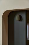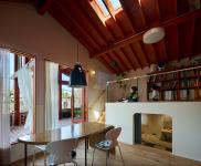 The skylight in the high ceiling is fitted with copper curtains, letting in soft, diffused light.