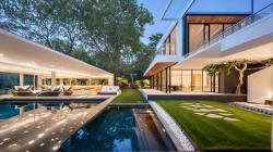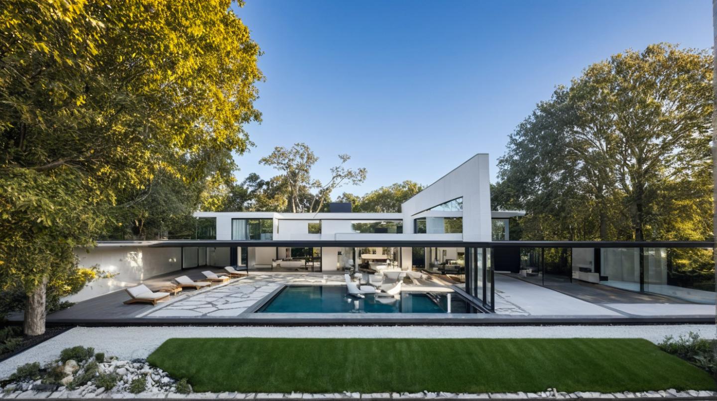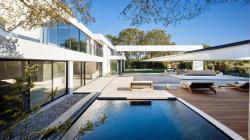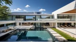The structure is defined by a powerful composition of horizontal planes and crisp, white vertical volumes. This composition creates a dynamic interplay of solid and void, light and shadow, and ensures that the built form always engages in a thoughtful dialogue with its natural surroundings. The central courtyard pool, a key design element, acts as a reflective anchor, geometrically mediating between the different wings of the residence and establishing a micro-climate of cool serenity.