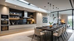 Material Restraint: A refined, limited palette of white rendered walls, polished concrete, natural timber, and frameless glass emphasizes purity and clarity, allowing light and form to take precedence over ornamentation.