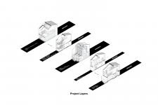 The project is composed of 7 house-shaped sections with 5 different thicknesses. The middle layers are thin, transparent, and in continuous interaction with the environment. This area contains the main entrance and the connecting bridge of the house, which is in contact with light and sky that are constantly transforming the experience of space. In contrast, the other layers are thick, safe, and calm. The layers consist of two functions: Served and Servant. The thicker layers are the living room, dining room, pool or master bedroom and the thinner ones are the kitchen, stairs and bathroom. All of them are houses, only sometimes they enclose us, and at other times, they release us into their middle layers.