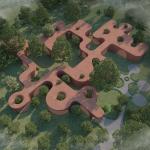 This semi-open, naturally ventilated structure accommodates a rich variety of community functions—seating zones, performance areas, informal classrooms, handicraft workshops, and a small restaurant. The spatial organization encourages flexible use, fostering spontaneous interactions and collective activities. The architecture is conceived as a continuous gesture where floor, columns, and roof merge seamlessly, forming a sculptural and organic ensemble that responds to the contours of the site.