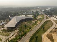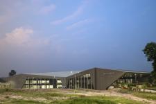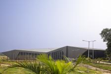 The Landport (ICP) comprises three primary built forms: the Passenger Terminal Building (PTB), the Inspection-cum-Warehouse facility, and the Cargo Building. All major structures, particularly the PTB, are positioned on naturally levelled areas of the site to ensure structural stability. The PTB stands out with its distinctive crystalline form and is enveloped in NedZink zinc panels using a standing seam system — a technologically advanced roofing and cladding solution selected for its durability and weather resistance. The zinc panels feature a simulated patina finish, lending the structure a seamless, uniform appearance while enhancing its resilience against the high wind conditions near the Bay of Bengal.