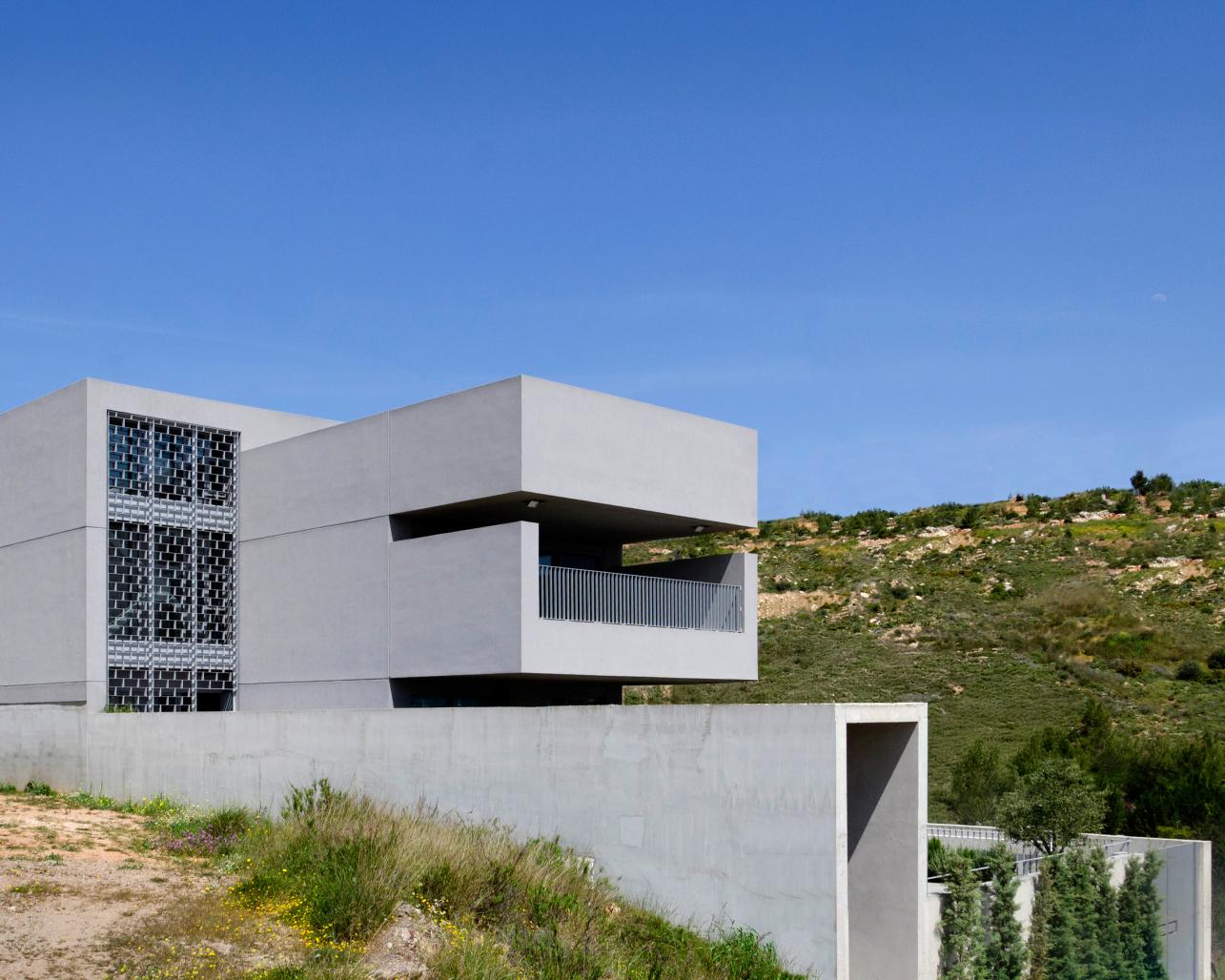 Diopter is a residential manifesto on perspective, visual, cultural, and familial. Located on the northern fringe of Athens, the house occupies a terrain where urban sprawl meets rural quietude. In this low-density setting, where architectural incoherence is the norm, the building stands as a deliberate act of framing: a sculptural device that selects distant vistas and denies the immediate.