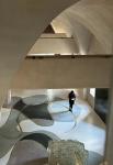 By using soft materials and delicate lighting, we create a sense of movement among the unmovable items. We want the space to be affluent, feeling as if one is in a natural cave, experiencing how the client’s products are created from materials to art pieces. For instance, we reused the offcuts and defective products from the clients and turned them into handmade tile pieces for the wall, like a mosaic, allowing the raw beauty of the material to speak for itself. Each piece shows its own unique handmade traces and tells its craft story. The nearby stainless steel display shelf also reflects that beautiful design in simplicity. At the same time, when new products are to be displayed, there is no need to redecorate the entire showroom, reducing the waste cost in business redecoration and promoting a more sustainable retail space. In this unique showroom & retail space, we designed a natural-like interior space as a tribute to our main target: the products, hoping to bring all visitors an immersive museum-like experience.