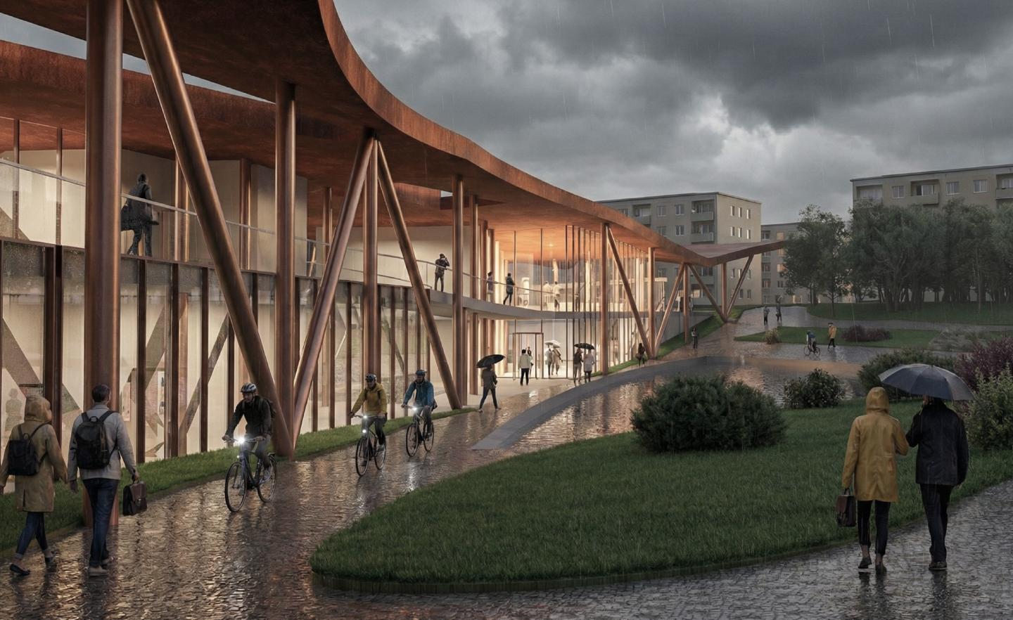 Multiple entrances at different levels and gentle slopes allow the building to act as an extension of the park — creating a public space that brings people together and supports movement and shared experience.