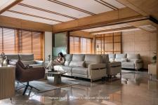 Italian leather sofas, tufted leather beds, boucle upholstery, beige & grey tone seating