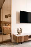 A muted material palette—Italian marble, warm veneers, fluted textures, soft laminates, and subtle metal accents—was chosen to evoke quiet luxury. These elements were layered carefully to ensure continuity across the home while still giving every space its own identity. The intention was to achieve balance: elegance without excess, simplicity without austerity.