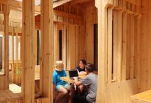 tensioned dowel-laminated mass timber modules that are easily disassembled, and don’t