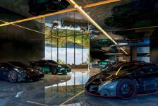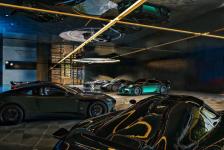 • A sophisticated office, complete with a hidden bathroom and striking views of the car gallery, adds functional opulence.