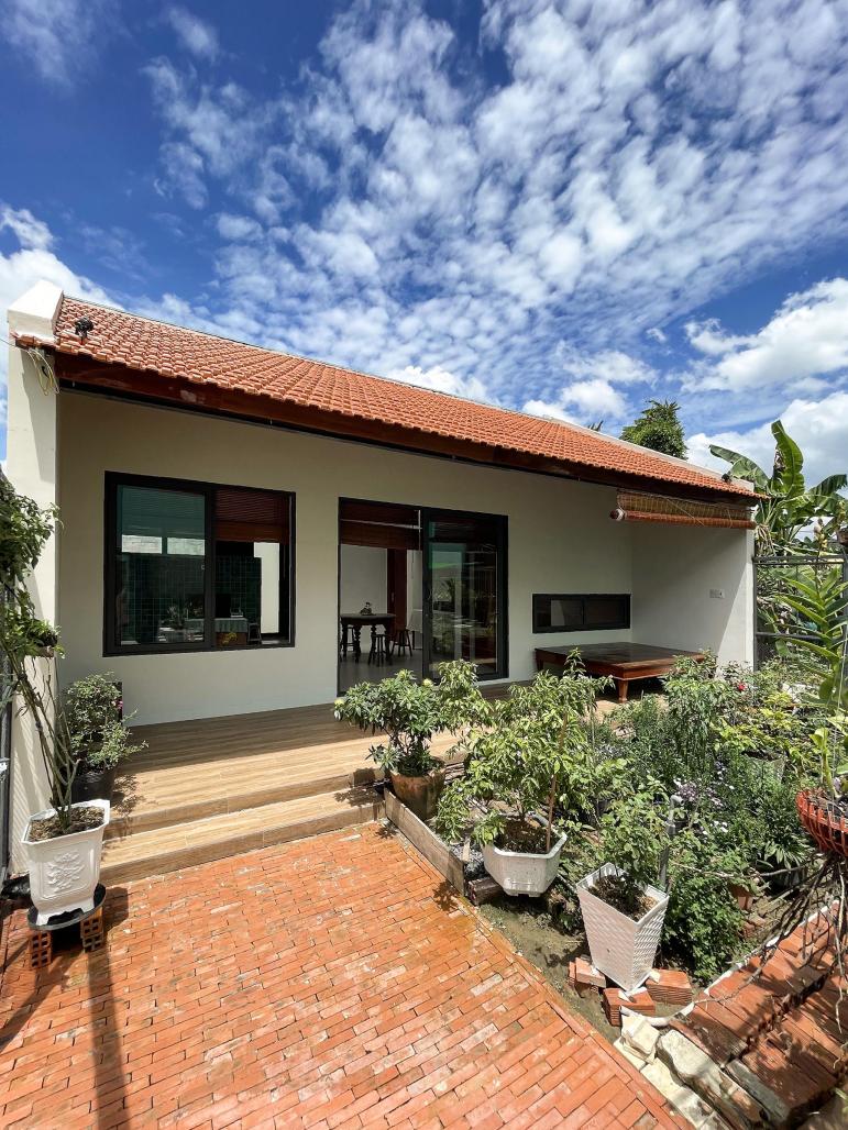 With the idea of creating a peaceful retreat for a retired female homeowner, the design prioritizes natural lighting solutions and a functional layout. To reduce costs, we reused materials from the old house, such as wood and bricks. The construction was completed in two months, with a total cost of approximately 550 million VND, including architecture, basic interior, and fencing.