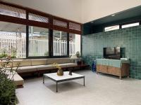 To evoke more emotions in the spaces, the design is created with many natural light approaches, to spread nature evenly on each activity in the house, combined with construction materials reused from the old house such as wood, bricks, help the house share new-old stories in an interesting and intimate way. The highlight of the design is the split-tile roof, which creates space for a skylight. Through a double-layered heat-insulating frosted glass panel, sunlight is diffused and softened, spreading gently throughout the house.