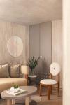 The material palette was curated to complement the life and leaf theme, incorporating natural materials like wood, stone, and glass for an organic feel. Green-toned fabrics and finishes were paired with soft beige, milky white, and natural textures to reinforce the connection to nature.