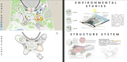 The structure utilizes a robust space frame system for flexible, large-span interiors. The double-skin facade ensures thermal efficiency and passive cooling, while vertical gardens and solar orientation strategies reduce the building's carbon footprint. Rainwater collection systems, composting stations, and natural lighting techniques further enhance its ecological performance. Service zones—ranging from archival storage and mechanical shafts to workshop spaces—are discreetly integrated for maximum functionality without interrupting visitor experience.