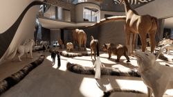 The museum unfolds from a soaring central atrium into four curated zones: Marine Life, Wildlife, Plants, and Rocks & Minerals. Each zone offers a multisensory, interactive journey powered by augmented and virtual reality technologies. Skylights and reflective curves deliver daylight gently into the space, mirroring the serenity of the natural world. Cafés, educational corners, and rest areas punctuate the journey with moments for reflection and learning.