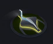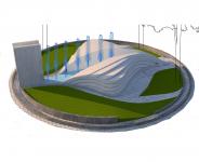 The monument’s form is based on fluid, organic geometry, reminiscent of the pages of an open book. This symbolic gesture refers to the "Book of Martyrdom," a cultural motif often used in Iranian memorial architecture. The curvilinear layers rising from the ground gradually elevate toward a central vertical element, creating a dynamic upward movement representing spiritual ascent and eternal memory.