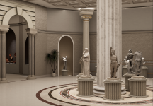The design intention focuses on fostering an educational and emotionally engaging experience through a radial, organic plan inspired by the cyclical nature of time. This fluid movement allows visitors to transition between eras without abrupt separations, encouraging a holistic understanding of human civilization. Exhibition zones are carefully arranged to follow a chronological timeline, covering key eras such as Prehistoric, Ancient Egyptian, Mesopotamian, Classical Greece, Ancient Rome, Medieval, Islamic Golden Age, the Renaissance, the Industrial Revolution, 20th-century transformations, and concluding with a speculative Future World of Tomorrow.