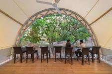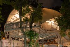 This is an architectural gesture that treads lightly, complementing rather than competing with its environment. It invites diners into a serene, elevated space that is as respectful of its context as it is expressive in form.