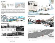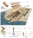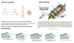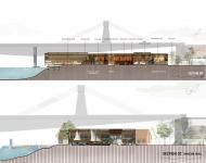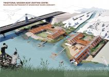 The design strategy of the "Crafting Centre" integrates craft, climate, and community in a cohesive architectural articulation. The form and function of the centre are derived from the internal logic and beauty of boat structures where every joinery, curvature, and voids are purposeful as well as poetic. Inspired by the structural harmony of a boat's spine and ribs, the project evolves as a progression of linear bays and semi-openings, allowing for programmatic and interactional flexibility. The elevated viewing bridge serves as the project's symbolic and spatial spine, connecting various functional zones—boat-making workshops, museum, riverfront promenade, market areas, and learning spaces—while also acting as a contemplative pathway over water and land. The unused area beneath the Notun Bridge is put to adaptive reuse converted into an area of net-repairing and informal selling zone where short-term or seasonal markets, craft stalls, and performances occur. By reusing unused infrastructural spaces as potential, the work resists unobtrusively the regimes between the formal and informal, past and present.