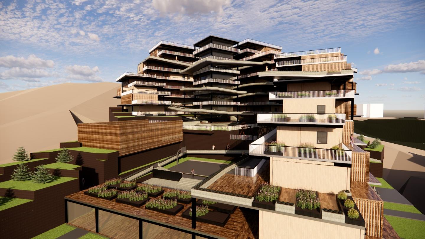 The design concept is shaped around the concepts of “gradation and encounter”. The structures are graded parallel to the slope of the land and social spaces are created between these levels. These spaces include public spaces such as open and semi-open areas such as playgrounds, picnic areas and sports fields. These spaces are accessed by ramps coming from the southeast and south of the site. These areas encourage social interaction and provide a ground for encounters for different age groups and user profiles. Thus, unplanned meetings, socialization and production between users have become possible. The courtyards and semi-open areas in front of the housing units allow both spatial and social boundaries to be stretched.