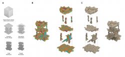 Architectural Scale: The "Primitive Hut," a pavilion demonstrating the integration of voxel-volumetric, panel, and surface systems. The column was assembled at the School of Architecture, The Chinese University of Hong Kong