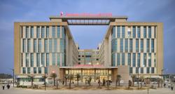 Located on the Badal-Bathinda highway, the Pragma Medical Institute is a new 500-bed urban healthcare facility in Bathinda, Punjab. Spread over a floor area of 5,75,000 sq ft, CDA's design for this institute infuses new sustainable ethos into the project to differentiate the institution from the cluttered and voluminous healthcare landscape of Punjab. Located away from the centre of the two-tier city, this multi-speciality hospital responds to the scarcity of quality healthcare in this region by catering inclusively to the city and its surrounding towns and villages alike.