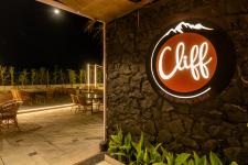 Every detail inside Cliff is a testament to thoughtful craftsmanship. Cushioned, modern furniture offers both physical and emotional comfort, while tables with polished granite tops and wooden frames exude understated elegance. A bar counter, gracefully curved to soften the lines of the space, serves as the focal point of the lounge.