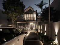 Architecturally, the house embraces a minimalist yet warm language. White plastered walls, grey steel elements, and strategic glazing compose a restrained palette that allows the changing colors of the sky and surrounding greenery to become part of the living experience. The interplay of solid and void, coupled with shaded transitional spaces, creates a dialogue between protection and openness, forming a spatial rhythm that adapts to the family's evolving needs.