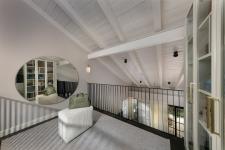 The top floor is the highlight of the house — a whole level transformed into a large, custom-designed walk-in closet in collaboration with Riviera Closets. The closets have transparent doors, soft lighting, and a 3.5-meter island for displaying accessories and shoes. The space also includes wall mirrors and Pilates beds, all designed to serve as a fashion photography studio.