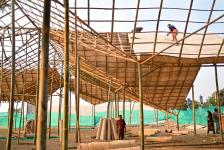 Locally sourced bamboo forms the primary structural layer of the pavilion. The soft partitions with, paaya (woven dried bamboo) mats, korra fabric, terracotta tiles, timber,are rooted in local craftsmanship. Each layer was assembled through local skill, always allowing the natural form to come through.