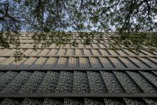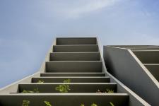 In response to the dense urban surroundings, the side façades are enveloped in perforated screens inspired by Rajasthan’s traditional stone jaali. Fabricated from lightweight foam concrete composed largely of recycled materials, these screens provide thermal insulation while filtering harsh sunlight. This layered façade reduces heat gain, improves comfort, and strengthens the building’s environmental performance. The result is an energy-efficient, contextually rooted office building that reinterprets local heritage through a refined contemporary lens
