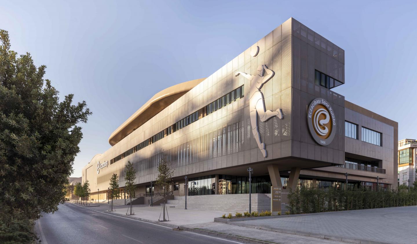 Located in Istanbul, the Eczacıbaşı Sports Hall is a multifunctional sports and event venue designed for Eczacıbaşı Sports Club, one of Türkiye’s leading volleyball organizations. Developed in compliance with both international FIVB and European CEV volleyball standards, the building comprises a 4.000-seat competition arena capable of hosting top-tier volleyball matches as well as large-scale cultural and entertainment events; a training hall with three full-sized courts; four private suites with a total capacity of 250 VIP guests and 80 additional seats; the Eczacıbaşı Sports Club Museum; and a lodging facility featuring 12 rooms and 22 beds. The sports club’s administrative offices have also been relocated into the complex. The entire roof of the 24.000 m² building is covered with photovoltaic panels.